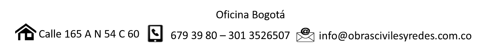 OBRAS CIVILES Y REDES S.A.S., tiene como misión diseñar, construir y controlar obras de infraestructura, a nivel nacional, utilizando tecnología de punta, que nos permite entregar productos de buena calidad; así mismo busca satisfacer de forma rentable las necesidades y deseos de los clientes, pensando siempre en su crecimiento y la sociedad; para ello la empresa se mantendrá sólida y autosuficiente lo cual repercutirá en su fin principal “brindar un servicio eficiente a nuestros clientes”.
